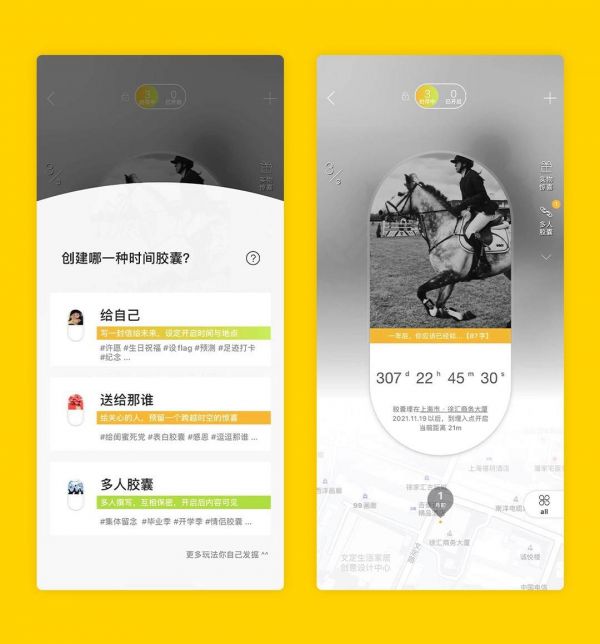 hope内,用户可以把时间胶囊埋在世界任何地方,指定开启的时间或地点,对象可以是自己或者是关心的人。用户也可以将线上的胶囊转成相应的实物信,送出一份颇具纪念意义的礼物。而时间胶囊天然具有的“等待”属性,也成为了吸引用户留存在hope的最大动力。随着时间的推移,这些用户自生的内容价值呈几何式增长,会成为用户宝贵的精神财富。