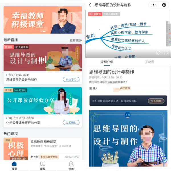 教师可以在其中观看名师的授课经验,并且可以在互动区与大家进行讨论,另外,不倦课堂设有微信社群入口,教师们可以加群互相学习。