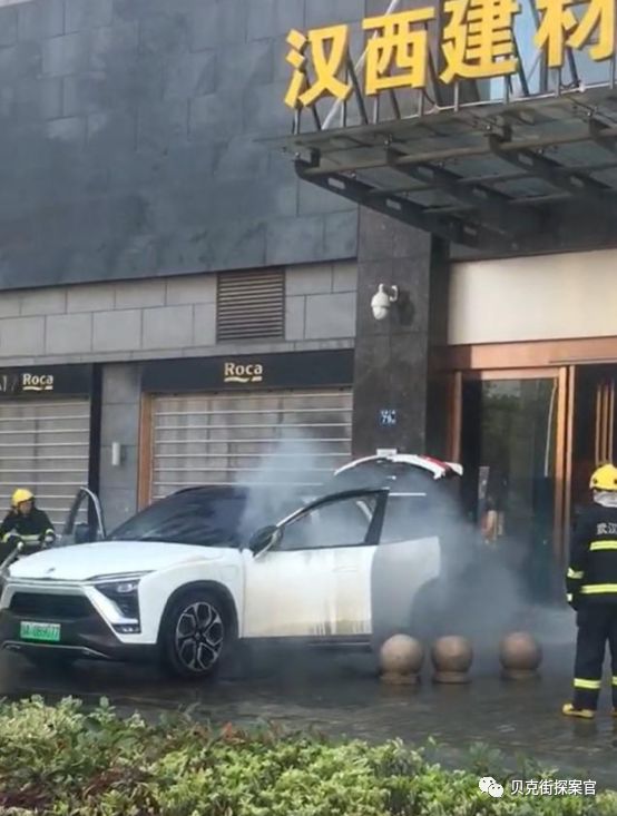同年6月14日,武汉汉西建材大世界门口又一辆白色蔚来ES8发生自燃。