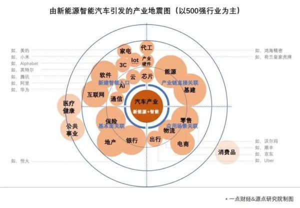 值得关注的是,新能源智能汽车“结构性机会”,也带来了波及甚广的产业地震。分析发现,那些新能源智能汽车的跨界巨头,都分布在“产业地震图”中。也就是说巨头们下场,不止为了“争机会”,更是为了“守天下”。