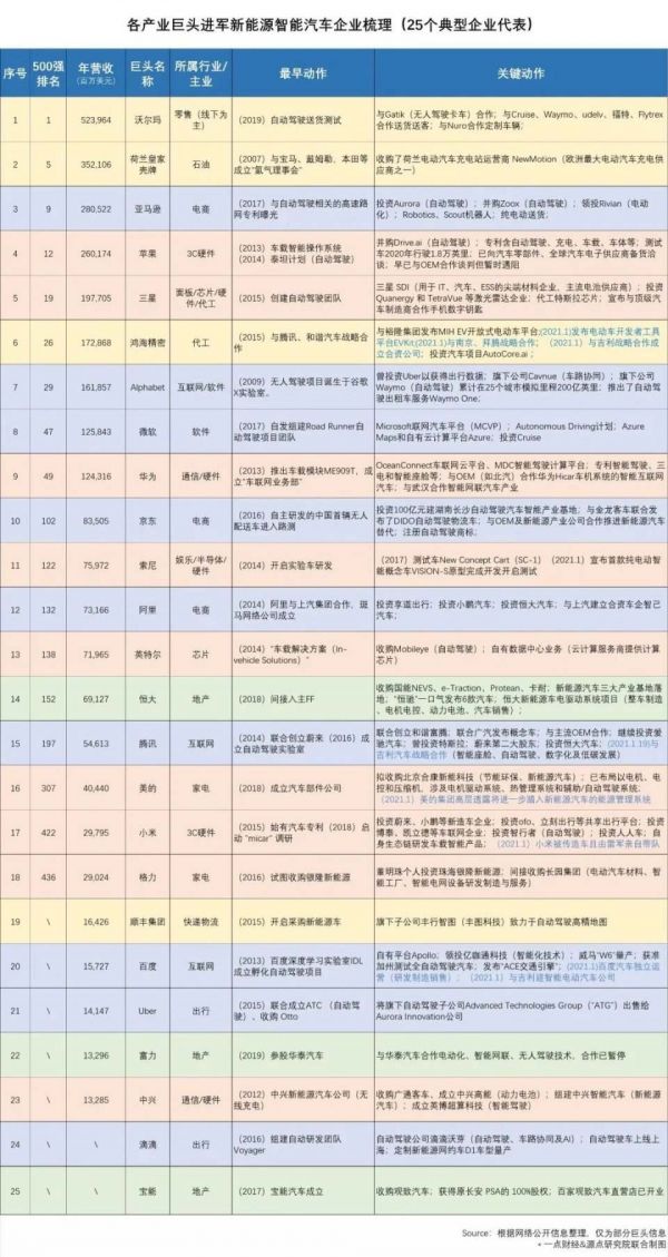 然而把时间线拉长,你会发现,巨头跨界造车并非今日之事,已有十余年历史。下场者更不止我们今天热推中看到的这些。实际上,轰轰烈烈的新能源智能汽车运动,早已波及了500强企业中的各行大佬。