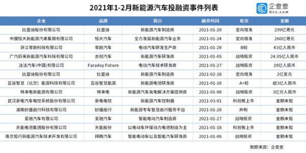 据企查查数据,仅今年前两个月,新能源汽车投融资已有13起。而从长期来看,年度平均单笔融资呈现逐年升高的趋势,2020年总融资额已破千亿。