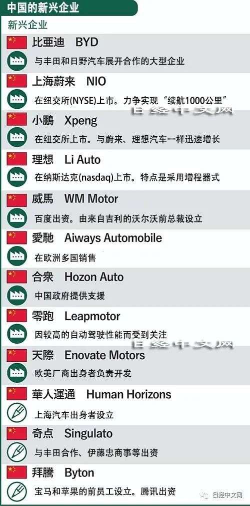新兴企业的增长显著。在美国,除了特斯拉和卡玛汽车(Karma Automotive)之外,多家初创企业已启动开发。还有企业借助从股票市场流入的丰富资金,收购通用汽车(GM)等现有企业的工厂。