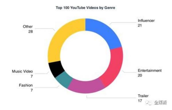 网红视频仍然是YouTube上最受欢迎的类型,影视预告和娱乐内容紧随其后。除此之外,时尚和音乐也是YouTube中的流量级玩家。
