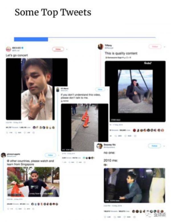 例如,韩流组合BTS的视频在上周获得最高的转发量,视频内容很简单,是成员之一对着镜头大喊“Let’s go to concert(一起去演唱会吧)”,获得了近50万的转发量。这也再次证明,在Twitter上,坚实的粉丝基础是一则视频能否成功的重中之重。