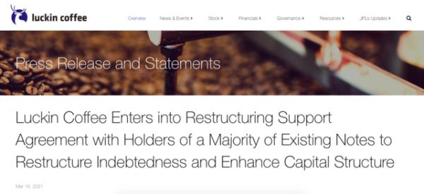 近期,瑞幸咖啡发布公告表示,已与重要债权人达成重组支持协议。