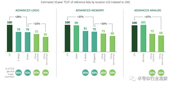 图2:美国和竞争对手的半导体晶圆厂的成本差异