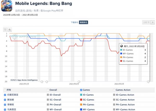 《无尽对决》火了之后,沐瞳科技在2019年推出了IP新作《Mobile Legends:Advance》。这是一款放置类游戏,登顶过东南亚主要国家的 App Store 下载榜,可见《Mobile Legends》IP的号召力。不过,《Mobile Legends:Advance》的营收能力比其《无尽对决》只能算是一般,如今在东南亚各国的 App Store 游戏畅销榜几乎都在百名开外。