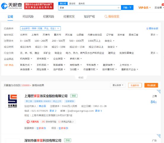 据天眼查APP显示,目前存续(在营、开业、在业)状态的家装企业已远远超过100000+。