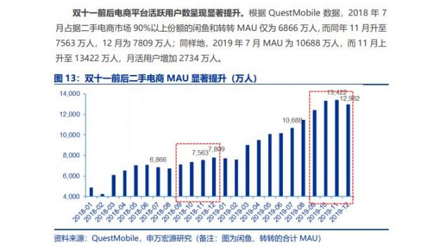 2021年1月底,第三方机构申万宏源发布了一份名为《掘金万亿闲置经济,二手电商快速崛起》的研究报告(以下简称申万宏源研报)。