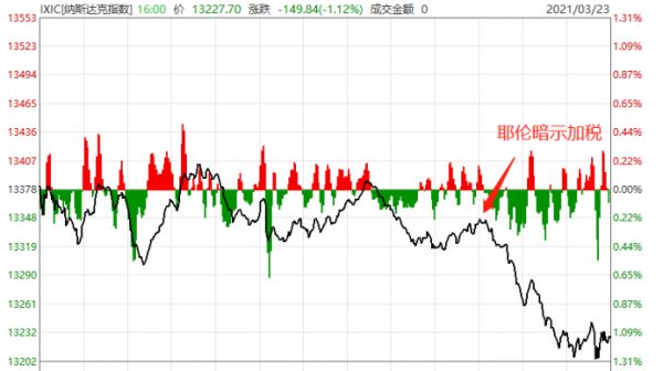 隔夜,美股表现不佳,纳指再跌逾1%。其中,尾盘被砸有一个导火索——美财政部部长耶伦发表讲话,暗示未来会加税。