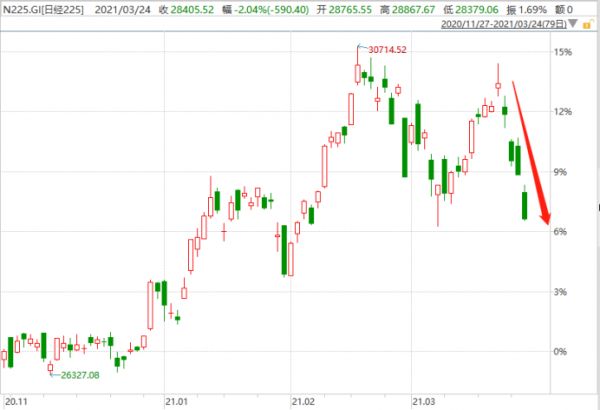 另外,日本近期也有所行动。3月19日,日本央行正式宣布,取消6万亿日元的年度ETF购买目标。当天,日经225指数大跌超1.4%,次日再度重挫2%。