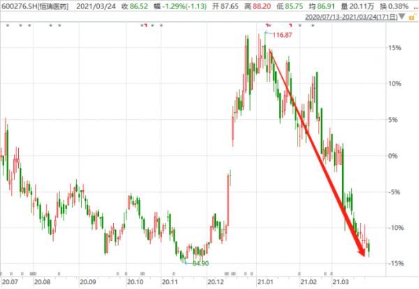 恒瑞从年前105倍的估值回撤到当前的78.8倍,似乎还没有止跌的意思,但继续下跌空间不会太大。恒瑞可谓是上百家医药公司的定价锚,只要恒瑞没有企稳,大多就还有估值回撤空间。当然,迈瑞、爱尔、康龙等优质龙头已拒绝下跌,并开启逆势反弹了,这些龙头这波跌幅也都比较大了,大致有30-40%。