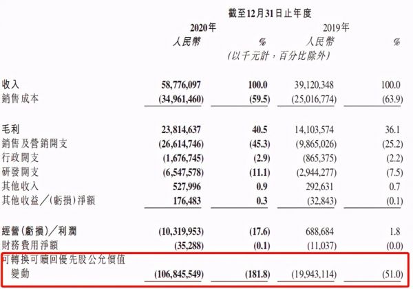 “优先股公允价值变动”涉及会计科目层面的一种操作。此前,小米、美团等公司在上市后的首份财报中,也出现了类似的巨额亏损。