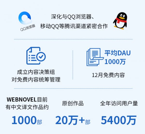 值得注意的是,阅文依靠优质内容在为平台持续吸引用户,带来营收的同时也在免费日阅读赛道开始发力。2020年阅文通过与qq浏览器、移动QQ等腾讯渠道进行免费内容分发合作,为阅文挖掘用户增量。截至2020年12月,阅文平台免费内容的DAU已经达到约1000万。