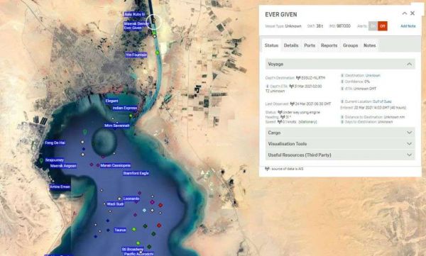 对于被“卡”原因,长荣公司表示:“突然的强风导致船体偏离水道,撞到河底,进而搁浅。”埃及气象部门的信息显示,当天埃及遭遇大风和沙尘暴,风速高达每小时50公里。