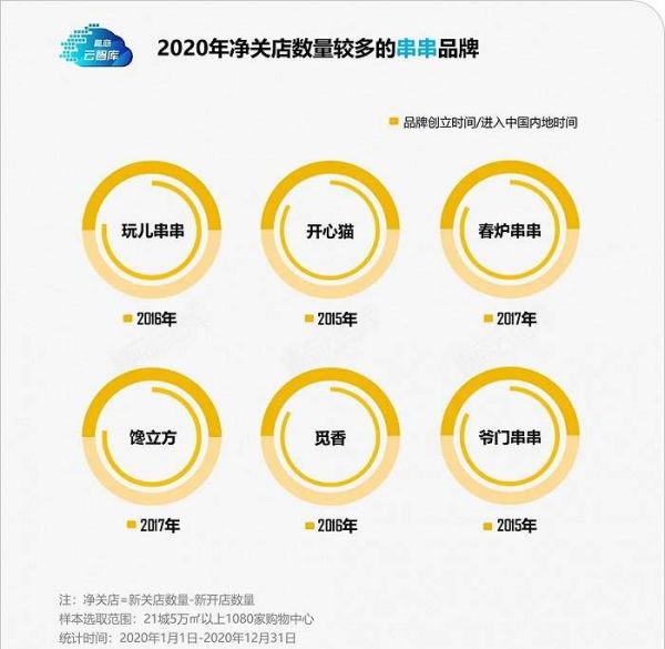 在对全国21个重点城市1080个已开业购物中心调查之后,赢商云智库近日发布了一组数据,2020年餐饮品牌门店达到近4万家(新开店+新关店),整体开关店比0.75。其中,有6大“网红”餐饮品类的开关店比排在倒数,分别是串串香、潮汕牛肉火锅、小龙虾、冰淇淋、抹茶以及舒芙蕾。