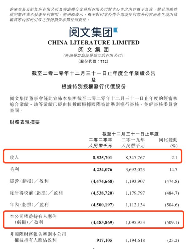 3月23日,网文一哥阅文集团发布2020年业绩公告。