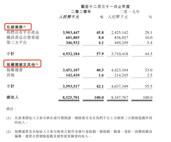 具体到业务板块,阅文集团2020年在线业务收入为49.3亿元,同比增长32.9%;版权运营及其他收入为35.9亿元,其中下半年版权运营收入27.3亿元,较上半年环比增长280%。