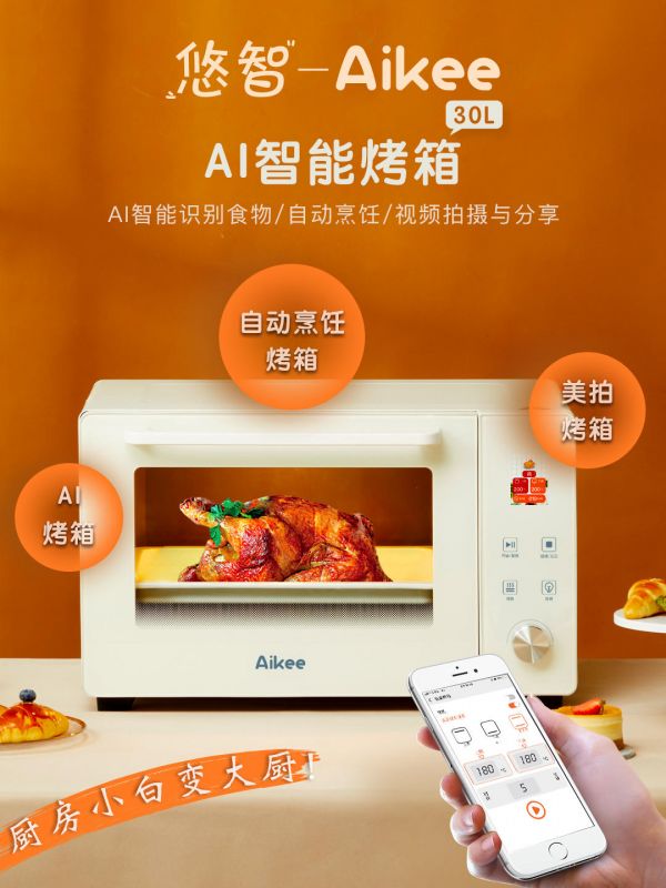 悠智AI智能烤箱内嵌摄像头,搭载了AI智能识别技术,可以通过图像识别,判断烹饪食材的种类、数量及重量等参数和烘焙状态,每种食物对应专有的PID温度控制算法,真正做到全自动烹饪。