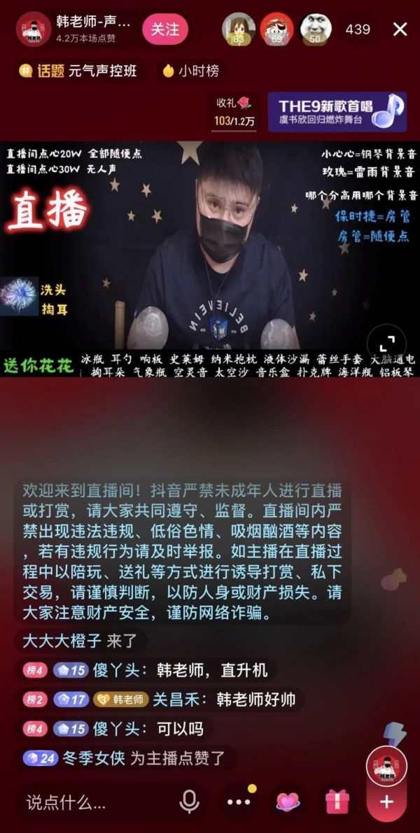 抖音上的“声控助眠”博主 / 抖音直播截图
