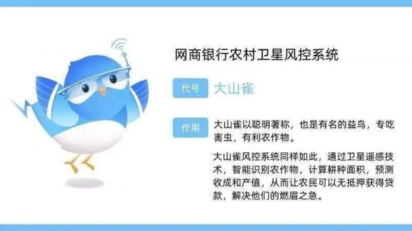 如去年9月,阿里推出了“大山雀”:一套以卫星遥感技术为基础的农村金融风控系统。这项技术可以高效率完成土地资产统计、农业估产等。在金融领域的应用上,有助于农户获取农业贷款,从而提升农户在种植过程中的采购意愿。