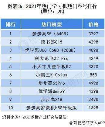 但王权终究没有永恒。随着数码产品、智能手机和移动互联网逐渐普及开来,教育硬件品牌们慢慢显出疲乏之势,一些没能适应时代变化的品牌消失在人们的视野中,而顺利转型的选手们如今都成为了独当一方的强者,例如步步高、读书郎等——即使面对科大讯飞、小米等新品牌的竞争,它们依旧活的相当滋润。一个例子是,在前瞻产业研究院的2021年热门学习机型号排行中,光是步步高(包括小天才)就占据了前十名中的五个席位。