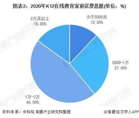 另据前瞻产业研究院的统计显示,近年来国内家庭对于K12在线教育的消费意愿也逐渐增强,乐意付出1-2万元为孩子报培训课程的家长已经达到了46%。