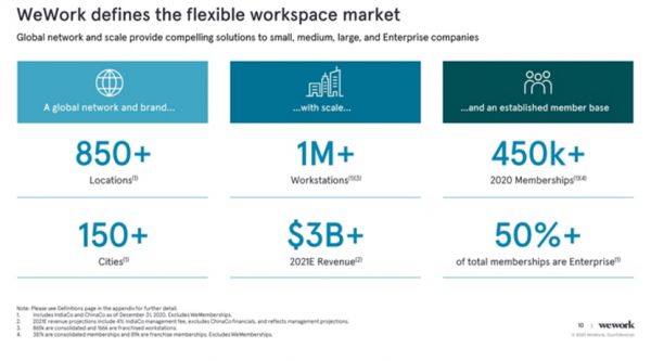 这笔交易预计将于2021年第三季度完成,SPAC对WeWork的估值为90亿美元(包括债务)。