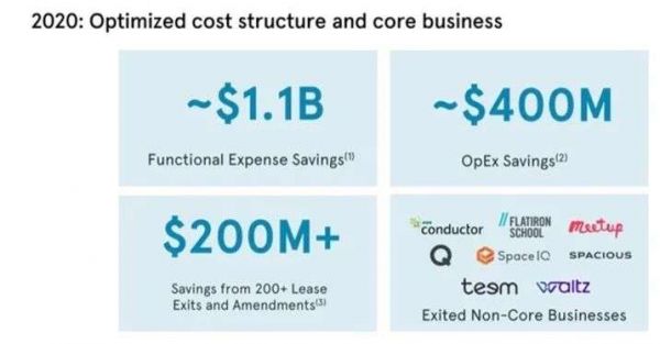 2020年,WeWork通过优化成本结构和核心业务,关闭了Conductor、Flatiron School、Meetup、SpaceIQ 、Teem、Waltz等8家公司。