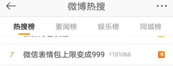 最初,自定义表情包上限是150个,之后提升至300个,当用户的表情包库添加了超过300个就会显示“你添加的表情数量已经达到上限”,自定义表情包容量小一直是微信招致用户吐槽的一个雷区。微信更新至新版本后上限提升至999个,表情包的扩容便迅速登上了热搜,网友直呼“以后可以愉快斗图了”。