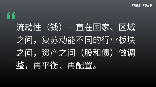 流动性(钱)一直在国家、区域之间,复苏动能不同的行业板块之间,资产之间(股和债)做调整,再平衡、再配置。