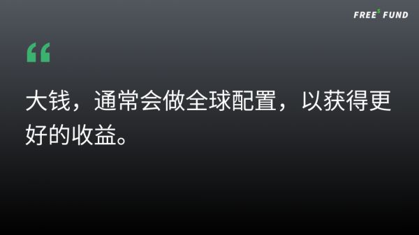 而当大家的确定性开始普遍提升时,那些“大钱”也会开始追逐更好的投资收益,也就是说他除了在资产类型上做配置外,也会在不同的地理区域做配置。所以,我们会看到,可能美国的钱去了欧洲,欧洲的钱来了中国,中国的钱去了美国。通过更好的全球配置,获得更好的收益。
