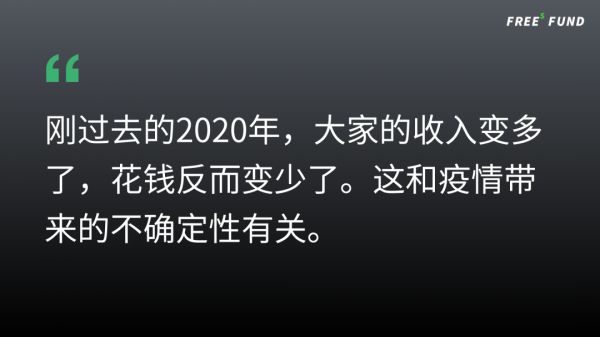 我们可以回看下2020年,有几个数据值得大家注意。根据国家统计局的数据,2020年全国居民人均可支配收入实际增长2.1%,与经济增长基本同步,但我国居民2020年的人均消费支出为21210元,同比下降了4%。简单来说,就是大家的收入变多了,花钱反而变少了。疫情带来的不确定性是背后的主要原因。