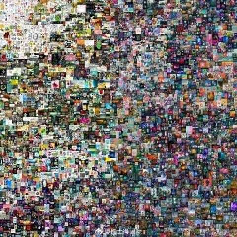 下面这幅图是艺术家 Beeple 创作的纯数字艺术品,取名叫《每一天:前 5000 天》,它卖出了 6900 万美元的天价,折合人民币 4.5 亿。