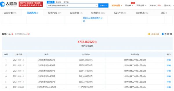 天眼查显示,中国泛海控股集团有限公司在3月3日至3月11日期间6次被列为被执行人,累计执行标的57.23亿元。从事信托行业5年的陆丰(化名)对雷达财经表示,自己所成立的民生信托受损投资者维权群人数已达200左右,其中投资最少的人逾期金额也有100万,“目前的到期量,少说也有几十亿。”