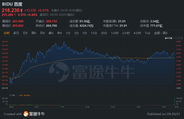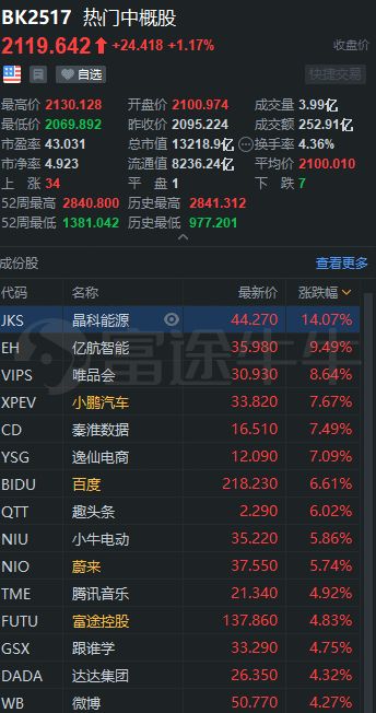 中概股3分钟 | 百度涨6.6%,花旗称估值有吸引力;光伏股集体上扬