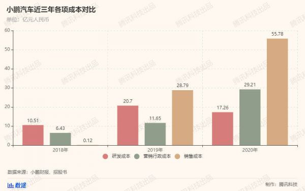 小鹏首款量产车G3于2018年年度正式交付,2018年单年的研发与行政、营销成本共计约为17亿元。