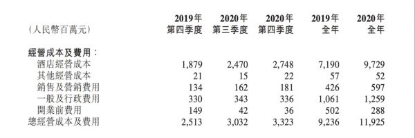 在成本方面,2020年第四季度,华住的酒店经营成本为27亿元,相比之下2019年第四季度为19亿元,上一季度为25亿元。若不计入DH,2020年第四季度的酒店经营成本为人民币21亿元,占该季度净收入的73.4%,相比之下2019年第四季度为64.6%及上一季度为70.4%。