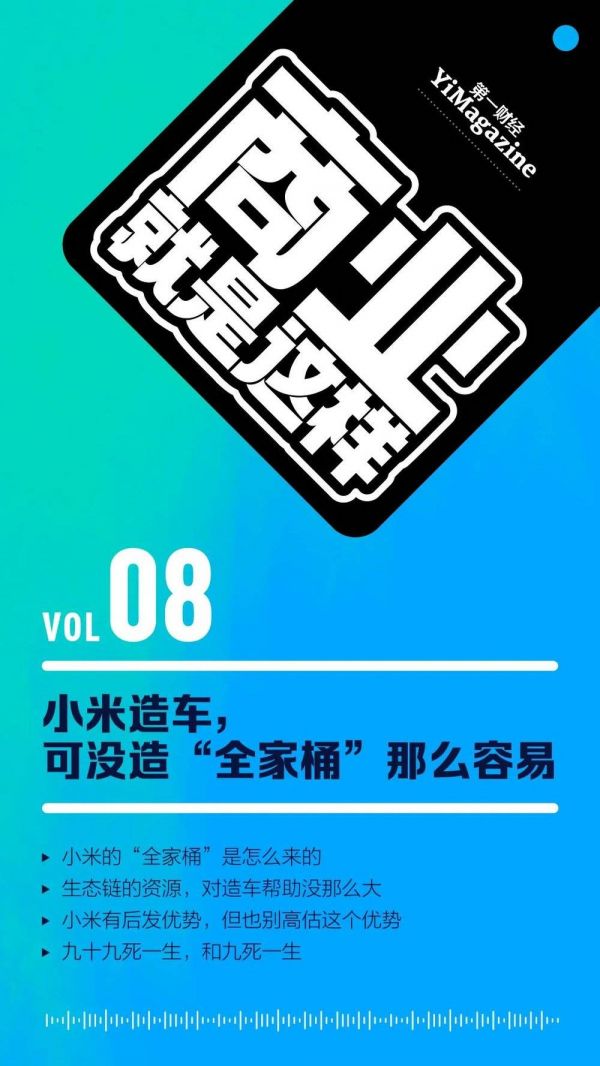 你可以在各大平台收听最新一期《商业就是这样》。在这个播客节目中,我们对于小米已有的业务会有更具体的背景介绍,也有一些更大胆的判断。本文来自微信公众号:第一财经YiMagazine(ID:CBNweekly2008),作者:肖文杰、许冰清,编辑:陈锐,题图来自视觉中国