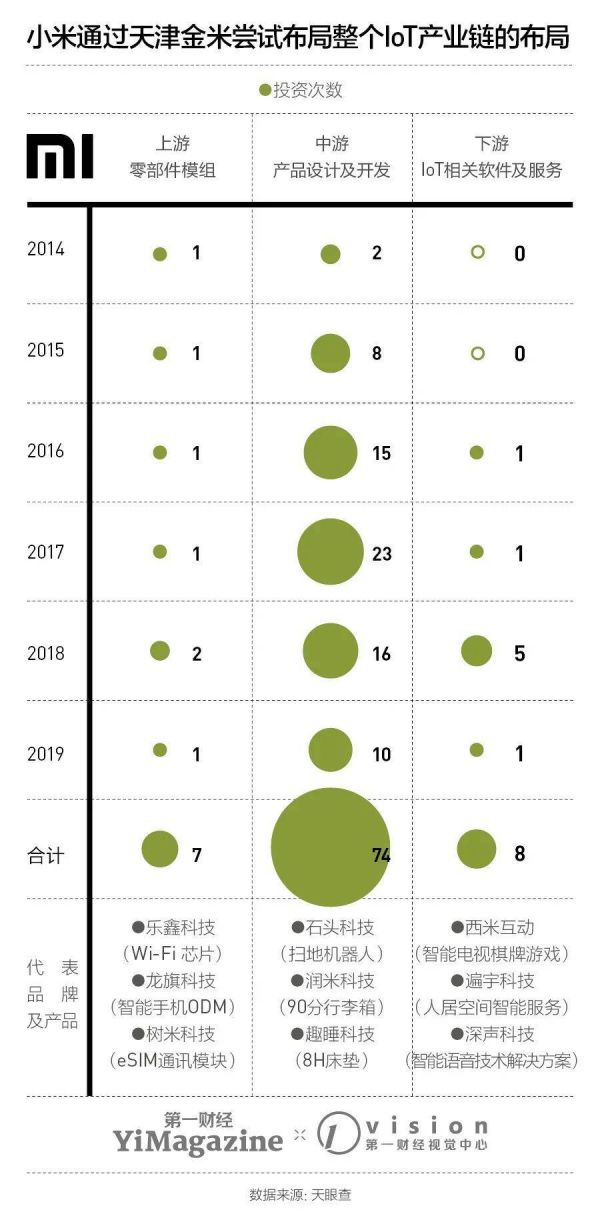小米的充电宝来自于紫米,90分行李箱来自于润米,扫地机器人来自于石头科技。这些公司初创时最重要的工作就是为小米设计并生产“爆款”产品。这就是小米此前为何能在短时间内覆盖大量它不熟悉的家居产品的原因。除了做不同产品的的创业公司,小米还会投资一些上游的零部件公司,所以,生态链企业的采购成本会比同行低一些。