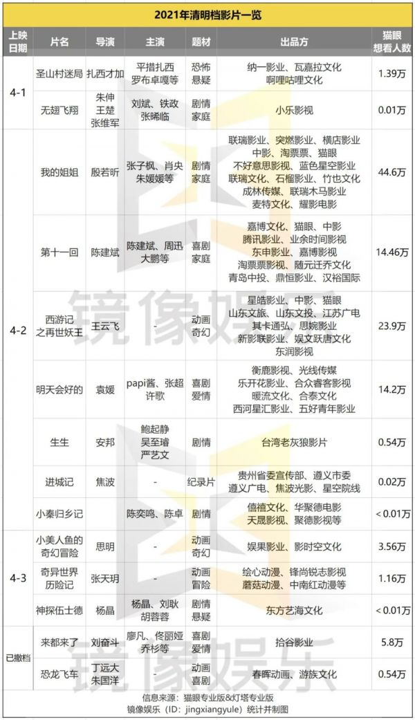 2021清明档:撤档与空降并行、家庭题材当道、“派系”资本抱团