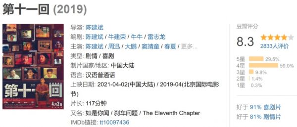 从目前各大片方的动向来看,为了积聚前期优势,受关注度高的影片几乎都采取了提前释出口碑的策略。其中,《第十一回》曾在第33届中国电影金鸡奖上进行展映,再加上近期点映口碑扩散,目前已在豆瓣拿到8.3的高分。