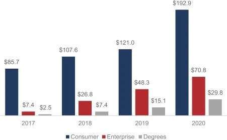 根据公司提交的s-1文件,该项目成为“我们增长最快的项目之一”。目前已有130多所高等教育机构为此付费。