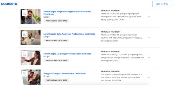谷歌在Coursera上提供的课程
