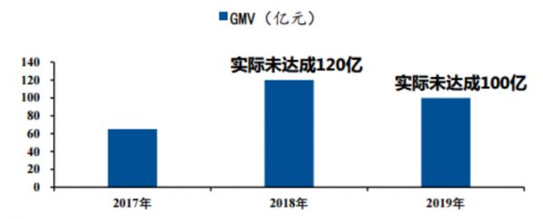 据数据显示,小红书 2017 年 GMV 约为 65 亿,2018 年目标为 120 亿并未达成,2019 年实际不足 100 亿。均未完成预期目标。