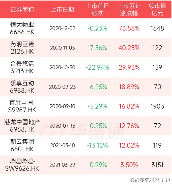 2020年10月以来,包括恒大物业、合景悠活在内的新上市物业企业均于上市首日破发。当时轰轰烈烈的物业股打新热,被接连破发的物业新股浇灭。