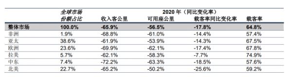 而根据国际航协发布的相关报告,从细分市场来看,非洲、亚太、欧洲、拉美、中东、北美的收入客公里同比跌幅均在60%以上,超过三大航的50%左右的同比跌幅;载客率方面,非洲、北美、中东地区的客座率不足60%;亚太、欧洲地区的客座率均为65%左右,表现不及三大航70%以上的客座率。
