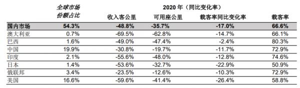 2020年全球国内航空客运市场(图片来源:国际航协)