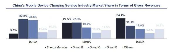 据招股书中艾瑞咨询的行业报告显示,从2020年的市场格局来看,怪兽充电后来居上,以34.4%的市场份额位列共享充电行业第一,成为中国最大的共享充电运营商。截至2020年12月31日,怪兽充电已经构建了包含超过66.4万POI(点位)的共享充电网络,累计注册用户超过2.19亿。